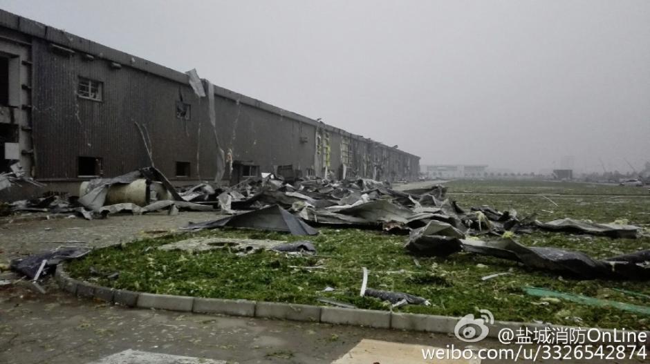 6月23日15时前后,江苏省盐城市阜宁、射阳等地出现强雷电、短时强降雨、冰雹、雷雨大风等强对流天气,局地遭龙卷风袭击,据初步统计,强对流天气造成因灾死亡78人,因灾受伤近500人,其中重伤近200人。图为阿特斯近4万平方厂房发生坍塌。该厂房内部放置各类危化品,增加了救援难度。目前,盐城消防已派出47组次,367人次分批次进入厂区搜救。疏散群众近300余人,据厂方反映,尚有2名员工失联。图片来源:盐城消防官微
