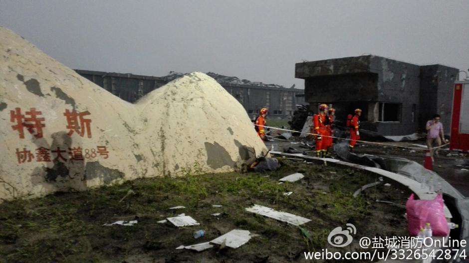 6月23日15时前后,江苏省盐城市阜宁、射阳等地出现强雷电、短时强降雨、冰雹、雷雨大风等强对流天气,局地遭龙卷风袭击,据初步统计,强对流天气造成因灾死亡78人,因灾受伤近500人,其中重伤近200人。图为阿特斯近4万平方厂房发生坍塌。该厂房内部放置各类危化品,增加了救援难度。目前,盐城消防已派出47组次,367人次分批次进入厂区搜救。疏散群众近300余人,据厂方反映,尚有2名员工失联。图片来源:盐城消防官微