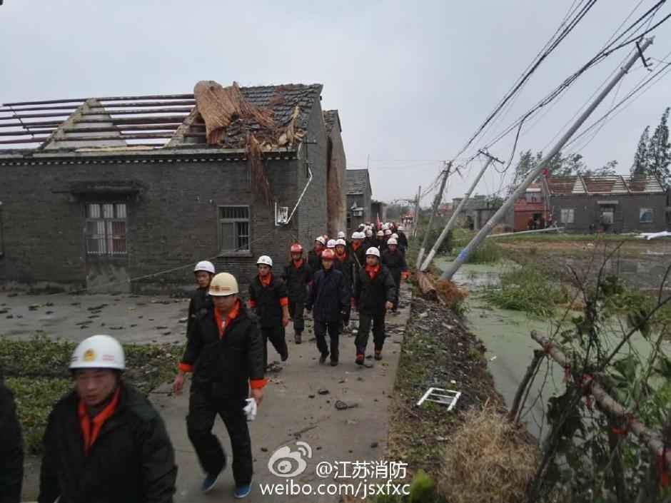 6月23日15时前后,江苏省盐城市阜宁、射阳等地出现强雷电、短时强降雨、冰雹、雷雨大风等强对流天气,局地遭龙卷风袭击,据初步统计,强对流天气造成因灾死亡78人,因灾受伤近500人,其中重伤近200人。图为6月24日凌晨五点,天刚拂晓,救援官兵在短暂休息后,已经准备开始新一轮的全面搜救。图片来源:江苏省公安厅消防局宣传处官微
