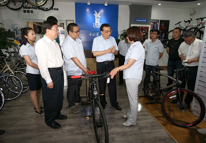 李克强体验“飞鸽”:我愿为中国自行车做广告