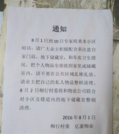 一份由任城当地出具的通知中称,专家组将于8月1日至10日“来本小区暗访”。 网友供图