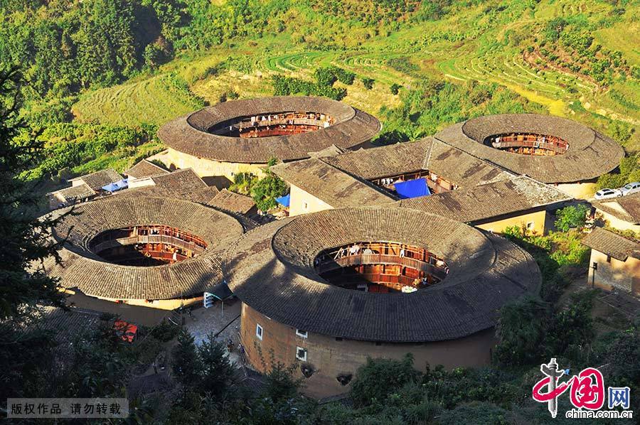 记者3日从国家旅游局了解到,国家旅游局决定对严重不达标的5家5A景区进行处理:撤销湖南省长沙市橘子洲、重庆市神龙峡两景区5A质量等级;对安徽省天柱山、福建省武夷山、福建永定-南靖土楼三景区进行严重警告。图为位于福建省南靖县的田螺坑土楼群(资料图片)。肖远泮/摄