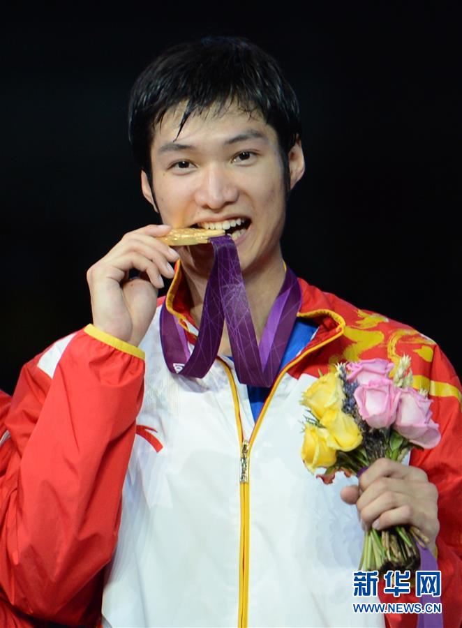 这是雷声在伦敦奥运会击剑男子花剑个人颁奖仪式上(2012年7月31日摄)。