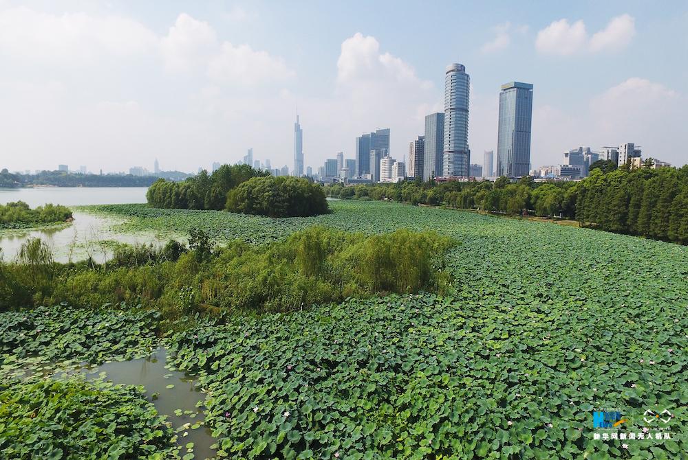 明洪武初年,玄武湖成为贮存全国人口、田亩档案(时称“黄册”)的“黄册库”所在,也禁止民众入内,时人无奈写诗说,“为贮版图人罕到,只余楼阁夕阳低”。玄武湖从此作为一代禁地,与外界隔绝了二百六十多年。1911年,玄武湖被辟为公园,后又开玄武门,筑翠虹堤以通湖上,玄武湖才成为南京著名的游览区。图为航拍湖中荷塘。新华网应康伟摄