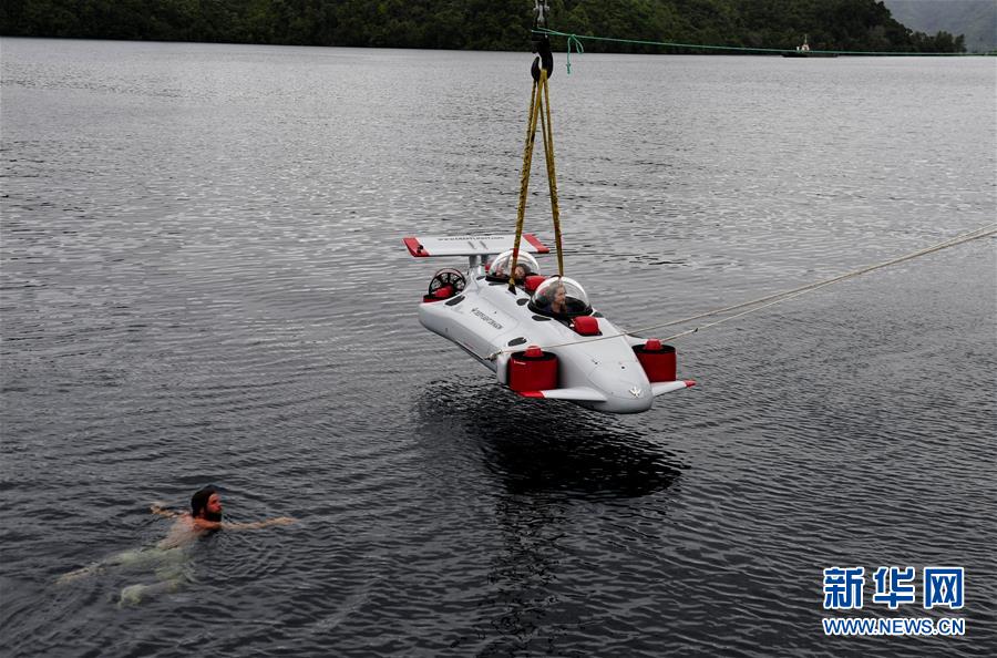 8月10日,深渊探索爱好者乘坐“张謇”号上搭载的“水下飞行器”。当日,我国万米级载人深潜器科考母船“张謇”号抵达巴布亚新几内亚的第二大城市——莱城附近海域。受当地矿业公司委托,“张謇”号上的“彩虹鱼”项目团队将在莱城附近海域进行深海环境调查,同时接待深渊探索爱好者。新华社记者张建松 摄