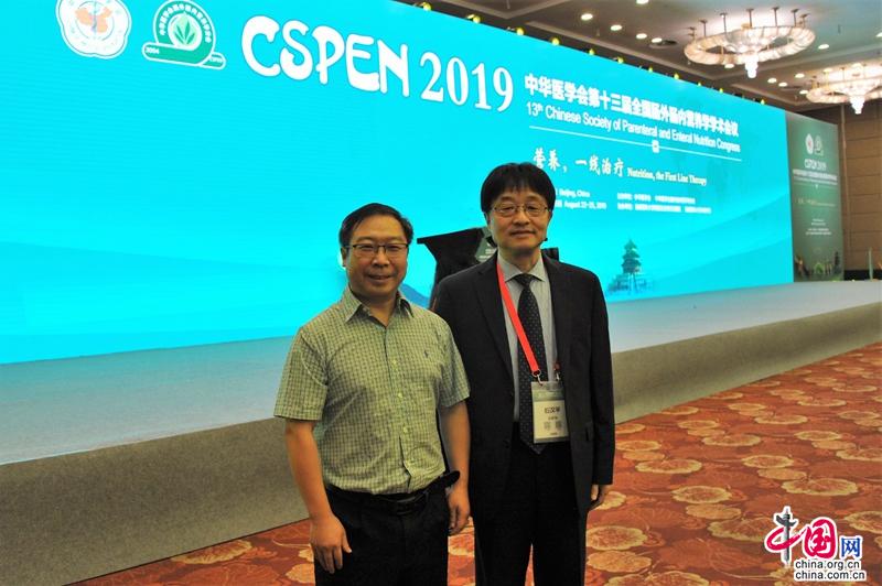 中国医学营养理念倡导者邹爱标(左)受中华医学会肠外肠内营养学分会主任委员石汉平教授(右)邀请出席大会