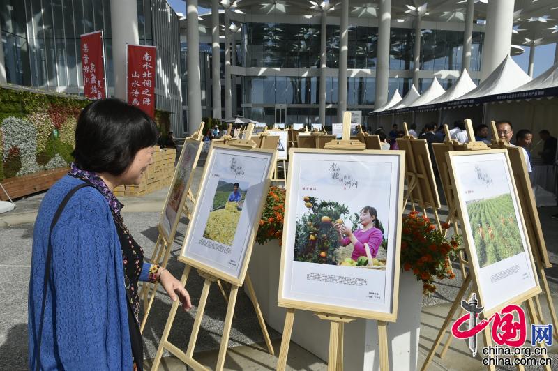 当天上午,在2019北京世园会国际馆广场上,来自南水北调中线渠首淅川的扶贫成果展及特色产品展销活动正在举行,软籽石榴、杏李、黄金梨、茶树菇、大闸蟹、土鸡蛋等20余种农特产品琳琅满目、果色飘香,吸引着大批国内外游客和采购商驻足品尝,大家对淅川的优质农产品赞不绝口。农特产品展位一旁还布置了淅川图片展,一幅幅珍贵历史图片,诉说着淅川的发展轨迹,拉近了游客和淅川的心理距离。
