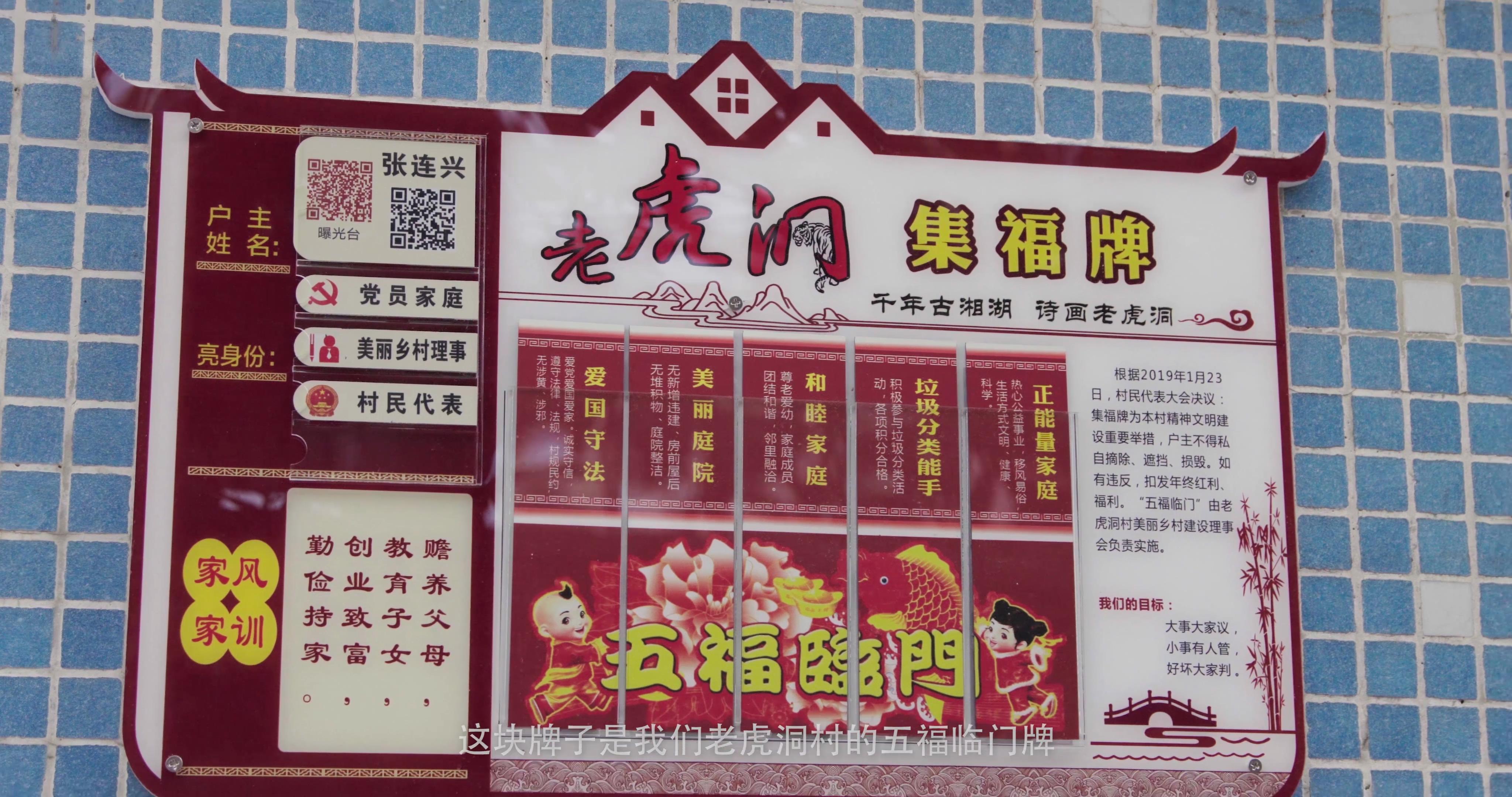 地处湘湖西南沿岸,依山傍水的老虎洞村一直不缺美丽的自然风景。最近,村子里另一处特别的“风景”来自一块每家每户门口的集福牌。