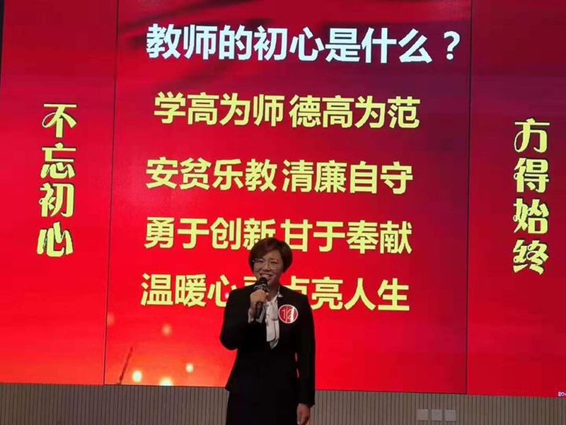 参赛教师们紧扣“不忘教育初心、方得育人始终”的主题,从身边人、身边事出发,用一个个生动、感人的小故事,结合自身工作实际和思想感悟,多角度表达了“不忘教育初心、方得育人始终”的思想情怀。他们用爱心汇聚成了一个个教育故事,诠释了对党的忠诚、对国家的热爱、对教育事业的倾心,让在座的每一位教师再一次体验到了做一名好教师的尊严感和成功感,让现场的每一位观众和评委为之动容,掌声不断。