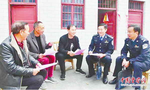 李旭光(右二)向群众宣讲安全防范知识。艾旭 摄