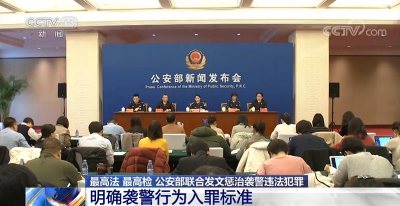 央视网消息:近年来,在依法履职过程中,警察遭受违法犯罪分子暴力侵害、打击报复的事件时有发生,为切实维护国家法律尊严,民警执法权威,保障民警更好地履行保护人民群众的职责,公安部10日召开新闻发布会,通报最高人民法院、最高人民检察院、公安部联合印发《关于依法惩治袭警违法犯罪行为的指导意见》相关情况。