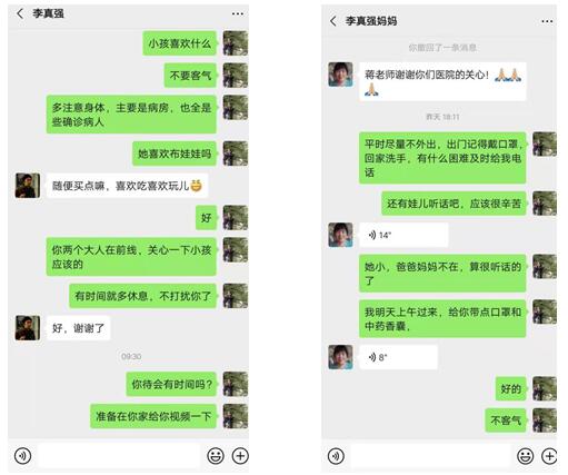 这是蒋亚男在微信上分别与李真强、李真强妈妈的聊天对话。