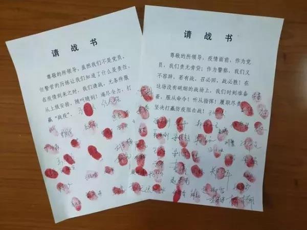 1月28日上午,泉城路派出所召开动员部署会,会后全体民警辅警自发写下请战书,并庄严签下自己的名字,摁上红手印