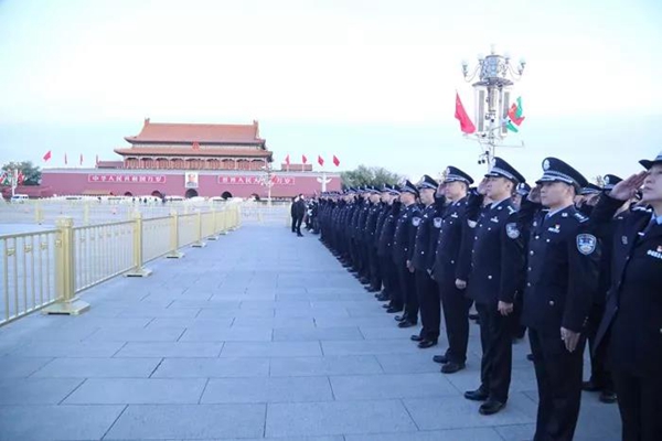 2019年11月27日,来京参加首批“枫桥式公安派出所”命名揭晓仪式的100名派出所所长,在天安门广场观看升国旗仪式