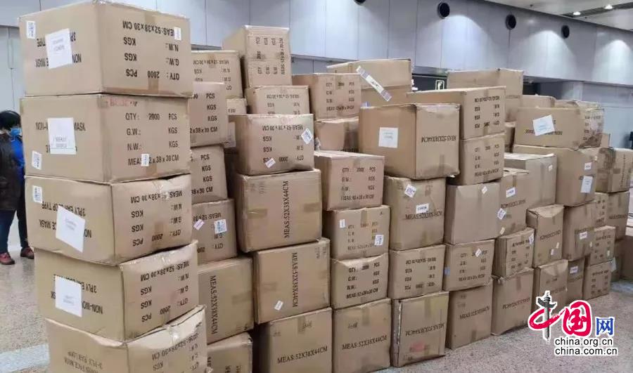 民革企业家郝泽忠联合海航集团、北京海关等多方齐心协力协调俄罗斯华人筹集捐赠的首批30万只口罩正式转交受赠方。