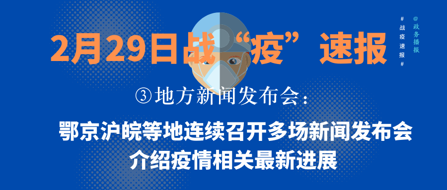 中国网北京2月29日讯(记者胡俊)针对疫情防控和经济发展情况,湖北、北京、上海、安徽、广东等地持续召开新闻发布会;武汉市生活物资保障情况如何、物价为何偏高?北京疫情防控形势咋样?疫情期间,上海如何保障生产和居民日常生活?安徽省文化旅游企业行业状况如何?据了解,新冠肺炎疫情发生以来,多地每日召开新闻发布会介绍本地疫情防控进展,至今,多地召开的新闻发布会数量超过30场,信息公开透明,有力保障了疫情防控工作有序开展……中国网政务整理汇总,畅通疫情信息传播渠道,为广大网友答疑解惑。更多资讯请@政务播报。