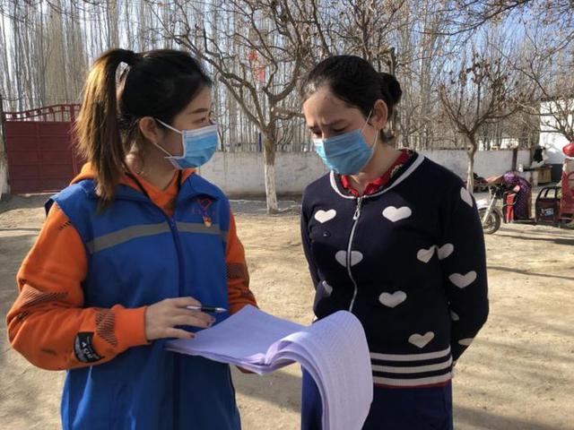 20多天没见老婆的社区工作人员帕肉克(蓝色口罩)