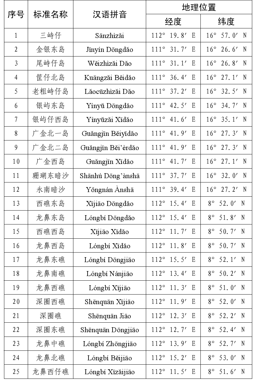 中国地名委员会1983年4月受权公布的《我国南海诸岛部分标准地名》继续有效,请社会各界规范使用已公布的标准名称。