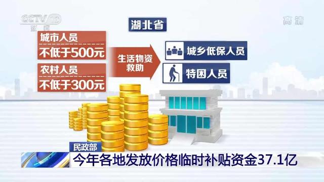 今年以来各地已向低保对象、特困人员等困难群众发放价格临时补贴资金37.1亿元,惠及8168.9万人次。湖北省对城乡低保人员、特困人员等特殊困难群体按照城市人员不低于500元、农村人员不低于300元标准,给予生活物资救助。各地对低保对象、特困人员、低收入家庭、建档立卡贫困户中确诊感染新冠肺炎的,根据困难程度每户发放1000到10000元不等的临时救助金。