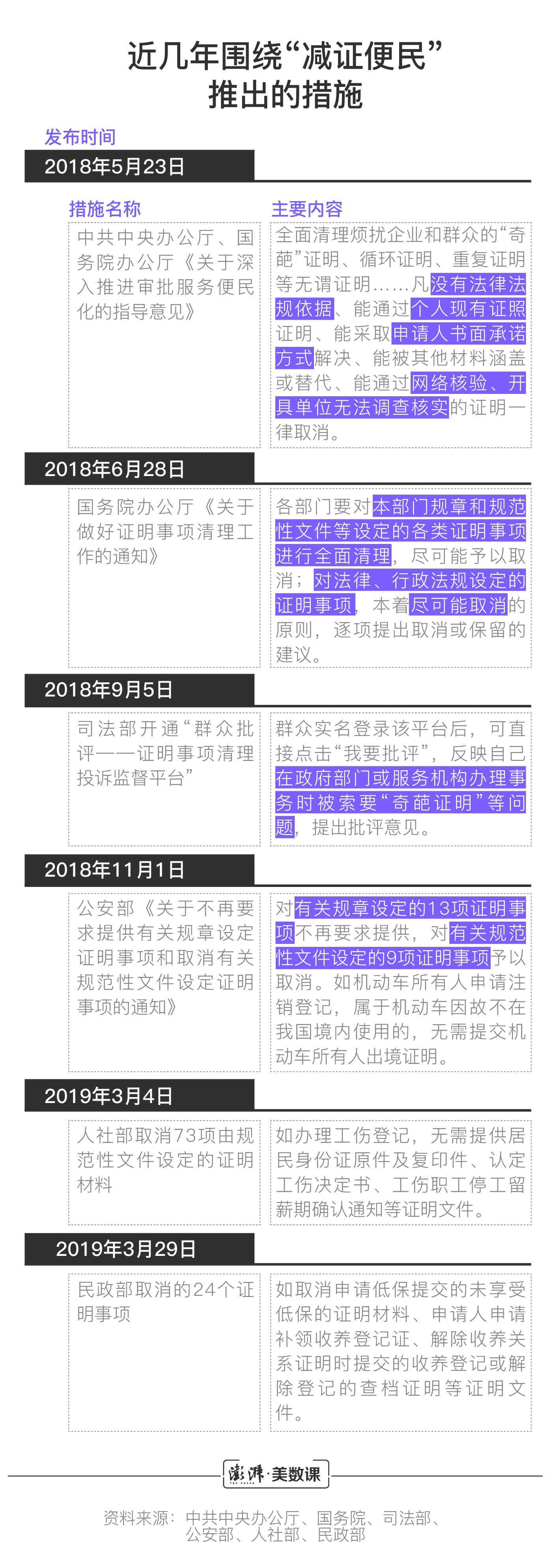 国家多部门对此做出了回应,在过去的两年里颁布了多项“减证便民”措施。