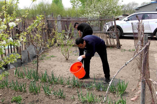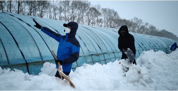 2020年4月20日,黑龙江多地“断崖式”降温。甘南县党员干部帮助农民除雪。(甘南县委宣传部供图)