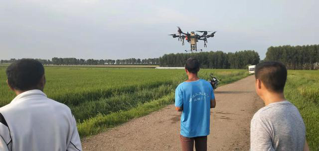 2019年8月,甘南县用无人机作业,进行水稻稻瘟病防治。(甘南县委宣传部供图)