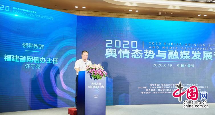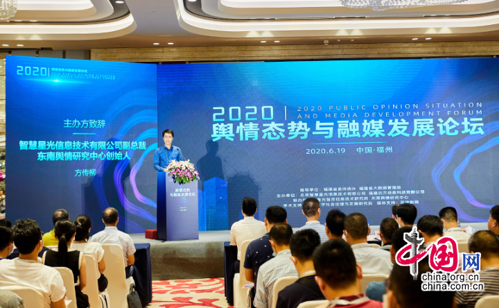 中国网讯 6月19日,由福建省委网信办、福建省大数据管理局指导,北京智慧星光信息技术有限公司与福建后方信息技术有限公司联合主办的“2020舆情态势与融媒发展论坛”在福州召开。