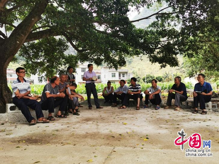 组织村里党员干部召开精准扶贫工作布置会。(德保县委宣传部 供图)