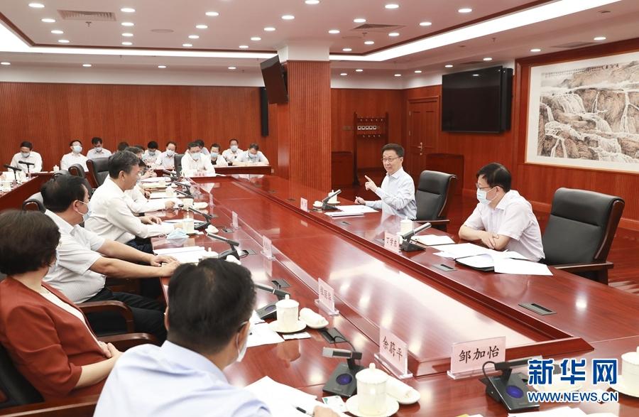 7月10日,中共中央政治局常委、国务院副总理韩正在财政部召开财税部门座谈会。 新华社记者 庞兴雷 摄