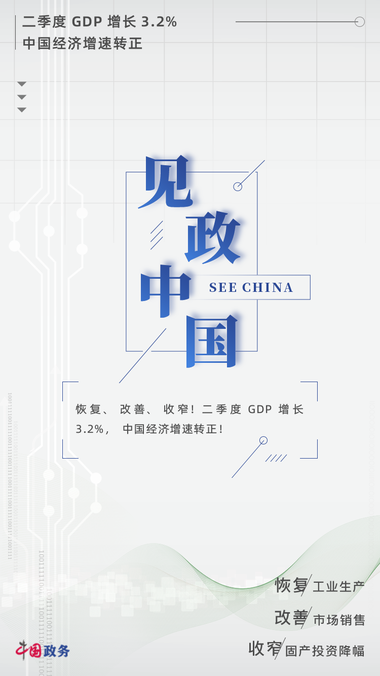 中国网政务7月16日讯 16日,国新办举行新闻发布会,介绍2020年上半年国民经济运行情况。上半年我国经济先降后升,国内生产总值456614亿元,二季度经济增长由负转正,增长3.2%,主要指标恢复性增长,经济运行稳步复苏。中国网政务频道《见政中国》栏目编发组图,读懂我国二季度经济发展概况。