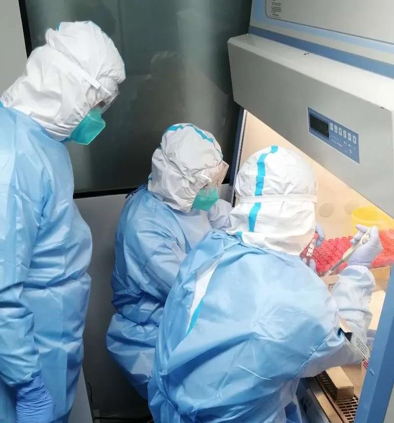 岳普湖县人民医院检验科医生正在对采集的核酸样本进行检测
