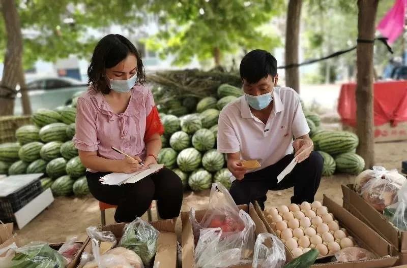 叶城县喀格勒克镇中城区田园社区党支部书记庞大华正在为居民采购蔬菜