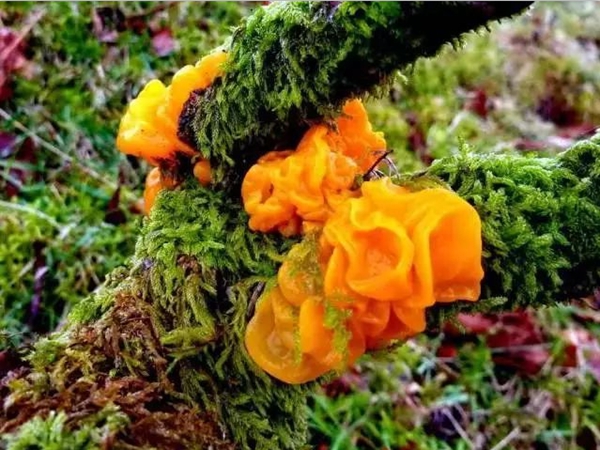 金耳,为真菌植物门真菌,菌丝有锁状联合,因其颜色金黄,又称黄木耳,因其形似人脑,又称脑耳。金耳含有丰富脂肪,蛋白质和磷、硫、锰、铁、镁、钙、钾等微量元素,是一种营养滋补品,并可作为药用,可防癌抗癌,另有治肺热、气喘、高血压等作用。