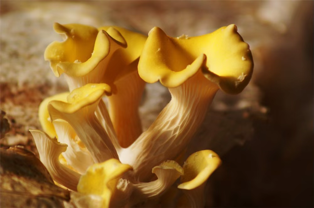 榆黄蘑又名金顶侧耳、黄金菇、金顶蘑、玉皇蘑;菌盖草黄色至鲜黄色,光滑,漏斗状。菌盖鲜黄、油亮,优美喜人。榆黄蘑既具味道鲜美、香味浓郁、营养丰富的食用价值,又具有滋补强身的药用价值。