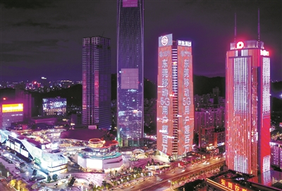 9月19日,东莞地标上演灯光秀,祝贺东莞移动5G用户突破百万大关。