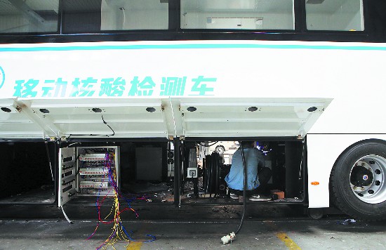 技术人员正在对车内实验设备进行检查调试