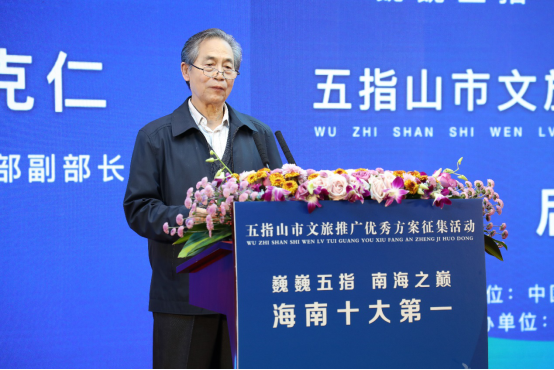 原文化部副部长、本次征集活动评审专家常克仁代表评审专家组致辞。常克仁表示,评审专家组将通过实地考察、线上评审、视频评审以及12月20日的现场评审,从征集到的方案中公平、公正地选出好作品、好方案,并希望最佳方案及其团队能与五指山市紧抓“十四五”期间文化建设对旅游业的战略引领和支撑作用,在“巍巍五指,南海之巅”竖起一面健康中国、文化旅游双赢的红旗。