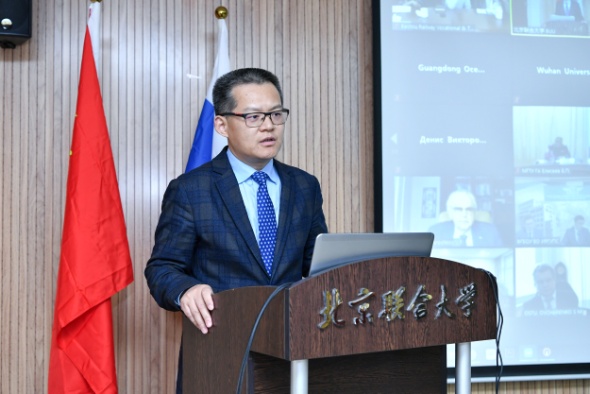本次论坛交流会以“携手抗疫,新形势下交流合作”为主题,围绕新形势下中俄两国高校在交通领域的合作,结合当前疫情形势,交流中外合作办学的经验,探讨互联网背景下交通领域人才培养新模式以及存在的问题和建议,对更好开展中俄合办学、合作研究及人才培养工作起到积极促进作用,不断提升学校国际影响力。会上,中国人民对外友好协会副会长李希奎、教育部国际司司长刘景发来祝贺视频、俄罗斯国家杜马发来贺电,中俄双方20多位代表做大会交流发言,北京联合大学副校长周彤受邀做主旨演讲,教育部国别与区域研究备案中心——北京联合大学俄罗斯研究中心也正式落户北京联大俄交大联合交通学院。