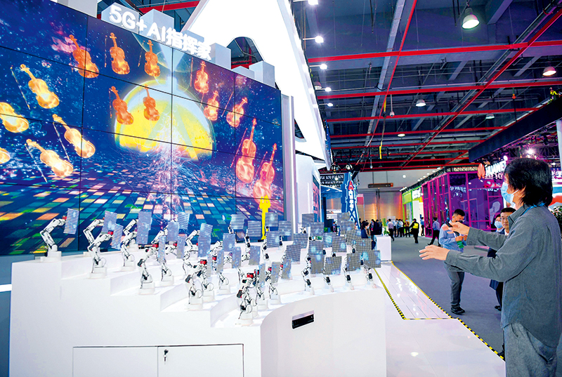 11月26日,工作人员在2020世界5G大会上调试5G体验设施 邓华摄/本刊