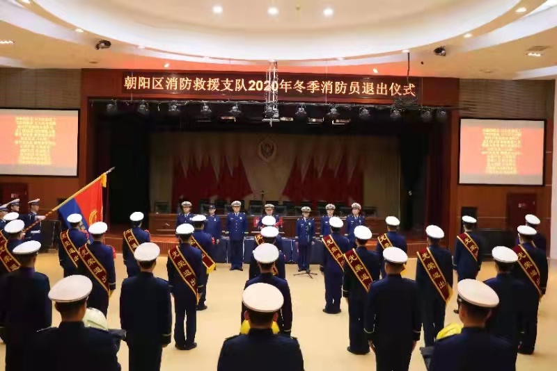 12月10日上午,北京朝阳消防救援支队隆重举行2020年度冬季消防员退出仪式,支队在家党委成员、退出消防员和指战员代表,共计50余人参加仪式。