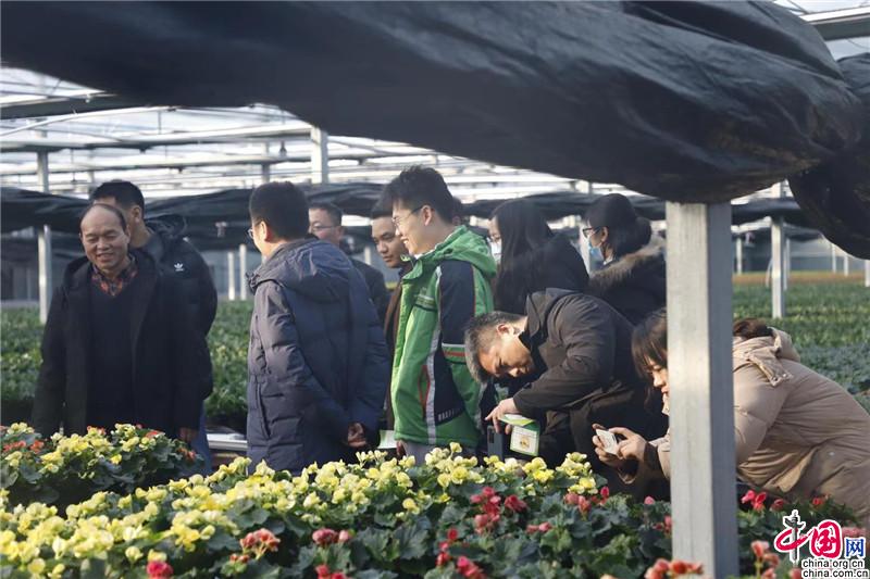 中国网12月16日讯(记者闫景臻)“这些花是发往北京的,这些是发往陕西的。”在聊城经济技术开发区蒋官屯街道办事处邓官屯村,这里的花卉市场每天都会呈现一派忙碌的景象。12月15日上午,聊城市首届网络文化节“新动能·新聊城”中央、省级网络媒体聊城行采访团走进邓官屯花卉市场,置身“花海”体验色彩斑斓的世界。