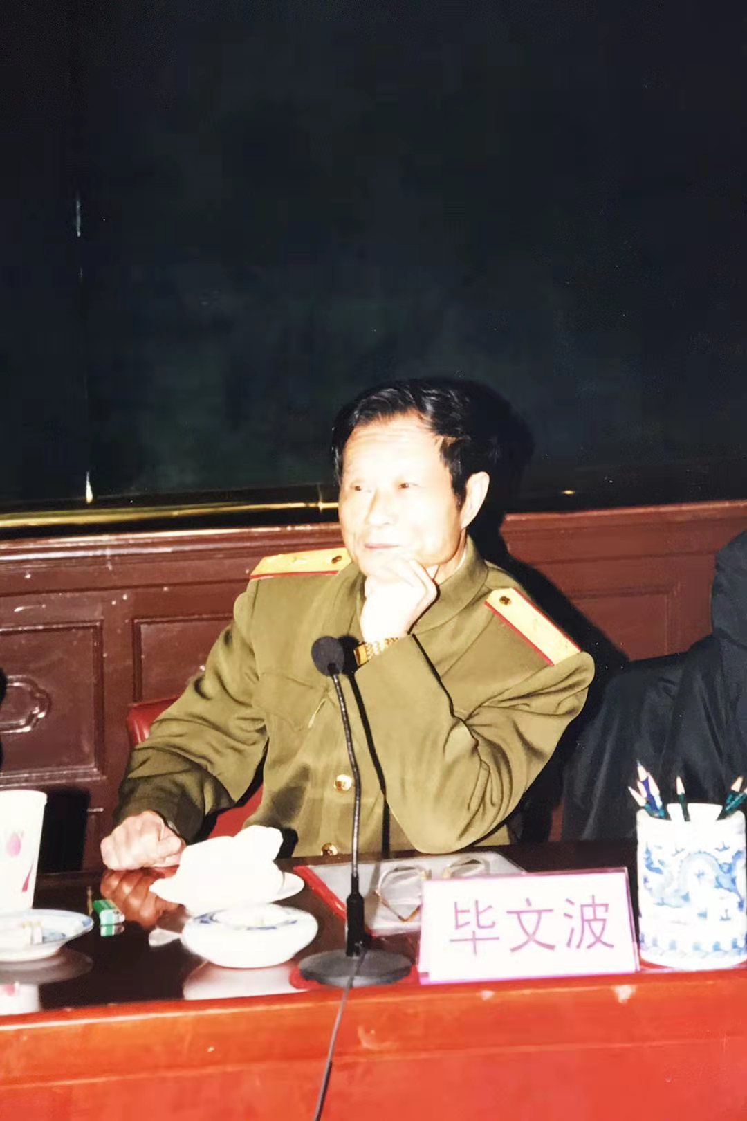斯人已逝,风范长存。这篇文章快要收笔的时候,我想从家里堆积如山的老照片中,找出一张与他的合影来配文,可翻遍了所有的照片,都没有找到。我想,这正像毕文波院长的为人师表,真诚善良,低调亲和,学富五车,才高八斗,但从不显摆张扬,更不哗众取宠。就让他留给我们的那种——一手夹着烟,一手拿着笔记本,儒雅的脸上挂着亲和谦逊的微笑,一件藏青色西装和军裤的随意搭配,让清瘦的身躯增添几分英武的标记性形象,永远地定格在我们的记忆中吧。(廖毅文)