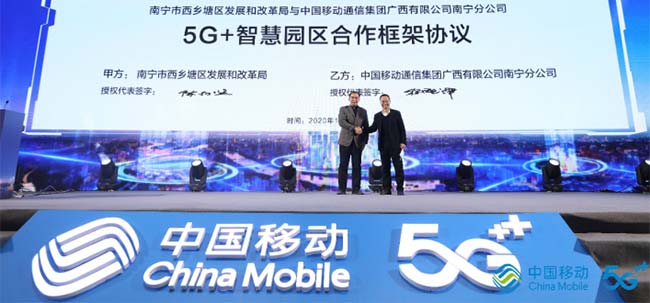 中国移动广西公司南宁分公司与南宁市发展与改革委签署5G+智慧园区合作框架协议 李慧敏/摄