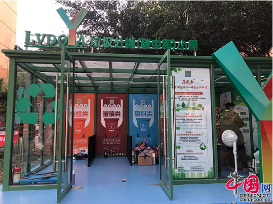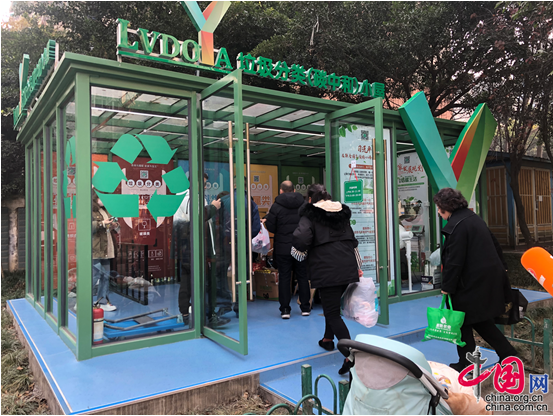 中国网1月14日讯 在成都簇锦街道永兴社区永乐苑小区,一座新颖别致、绿色耀眼的垃圾分类亭引得不少行人驻足观望,更多的群众则在积极扫码使用绿豆芽APP参与垃圾分类碳中和行动。据了解,这是全国首创的“碳中和垃圾分类站”在成都落地使用。