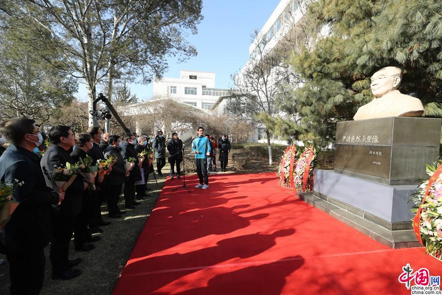 来宾在严济慈塑像前纪念追思(杨天鹏 摄)