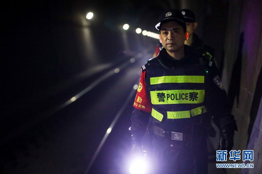 1月27日,民警在隧洞内沿线巡查。