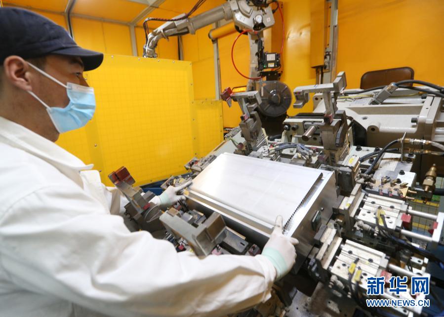 2月19日,在浙江省湖州市安吉经济开发区一科技公司内,工人在车间里赶制汽车铝电池盒订单。