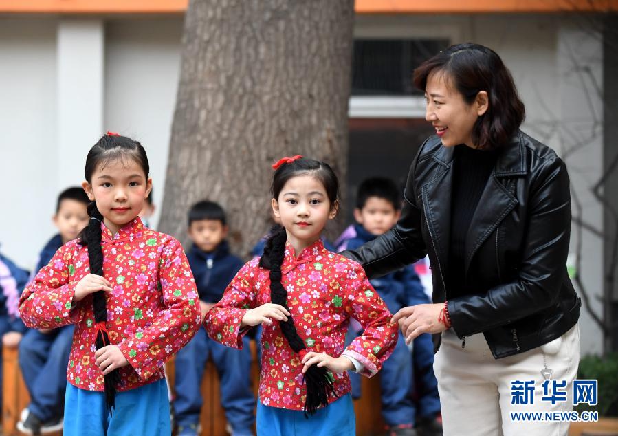 3月11日,石家庄市桥西区裕华西路小学参加课后托管的学生在学习戏曲表演。