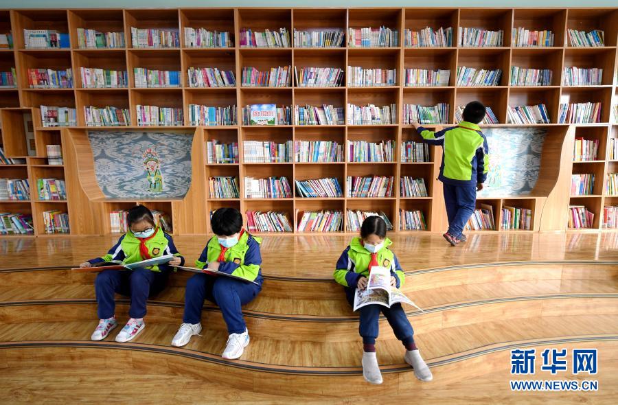 3月11日,石家庄市桥西区裕华西路小学参加课后托管的学生在图书馆读书。