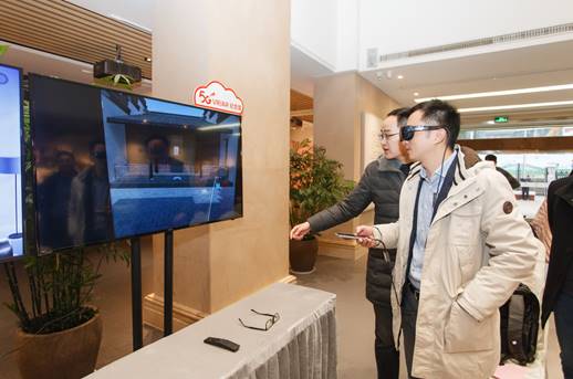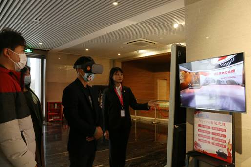 参观者戴上5G VR眼镜“云游”周恩来纪念馆